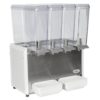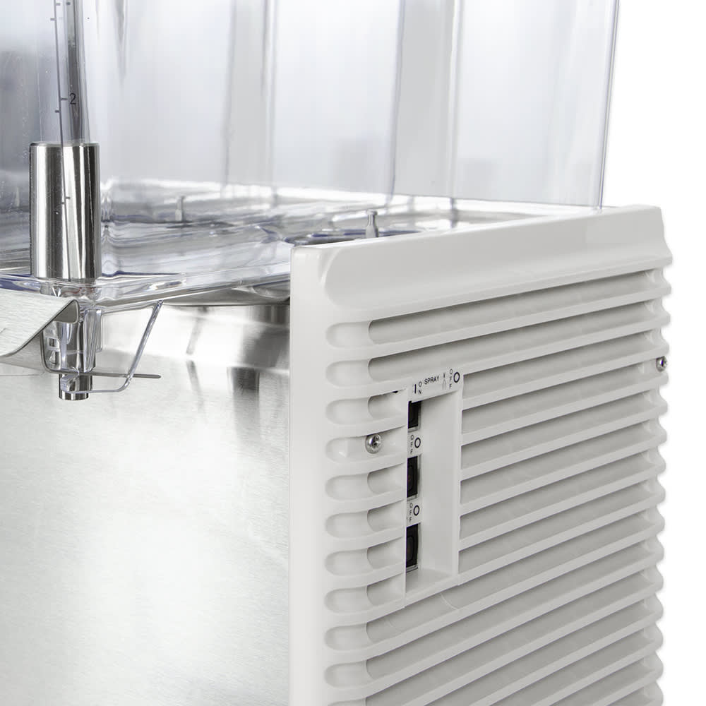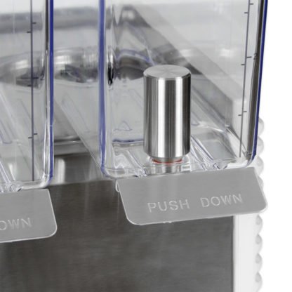 In addition to letting you offer four different flavors, the Crathco E49-4 includes traditional spray circulation as well as agitators to make the dispenser compatible with drinks that are prone to foaming, allowing you to offer virtually any type of chilled beverage. The dispensing area can accommodate cups that are 8 inches tall, letting you easily offer different drink sizes. The pouring valves are designed to be drip-free, producing less mess, and the push-levers provide instinctive operation so the drink machine can be used behind-the-counter or in a self-serve capacity.