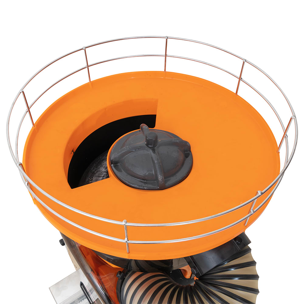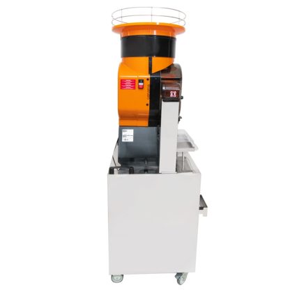 - Automatic carousel style feeder feeds oranges into machine quickly and efficiently