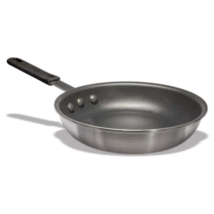 Thanks to its Teflon non-stick coating, this professional grade pan facilitates easy stirring and quick food release. Convenient and safe to use, this fry pan has a triple riveted molded handle which resists heat up to 450°F.