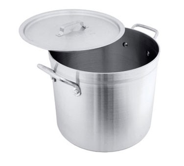 Thanks to its 5mm thick aluminum construction, this pot distributes heat evenly across the surface for thorough cooking. Built with riveted loop handles, this stock pot is easy to transport from the counter top to the stovetop even when wearing oven mitts.