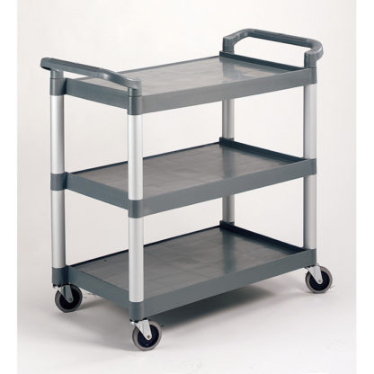 Suitable for restaurants, catering halls and food courts, the Crestware LTROLLEY Large 3 Tier Utility Cart is multi-functional cart that can be used for anything from bussing tables to transporting kitchen equipment. Designed with three sturdy plastic tiers, it offers ample storage space, and thanks to its four sturdy caster wheels and durable handles, it is easy to maneuver and transport from the kitchen to the serving area.