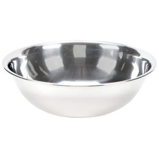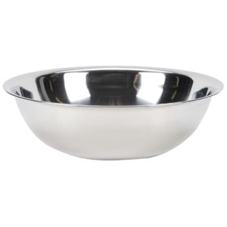 Mix large batches of batter or toss salads using the Crestware MBP20 Professional Stainless Steel Mixing Bowl 20 Qt. Designed with durability in mind, this bowl is crafted from heavy weight stainless steel which is strong enough to endure rigorous mixing without denting or rusting. Thanks to its concave bottom, this mixing bowl stays perfectly balanced and is deep enough to prevent spills and splatters.