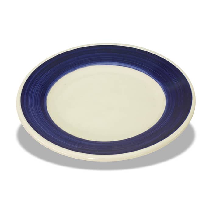 Use the Crestware PIC46B Piccolo Blue Rim Plate 10-1/4″ to serve entrees, hors d’oeuvres and other delicious specialty dishes. This attractive plate provides a great backdrop for your served food. Enhanced by a wide rim brushed with blue, this plate will add a vibrant touch to your presentation.