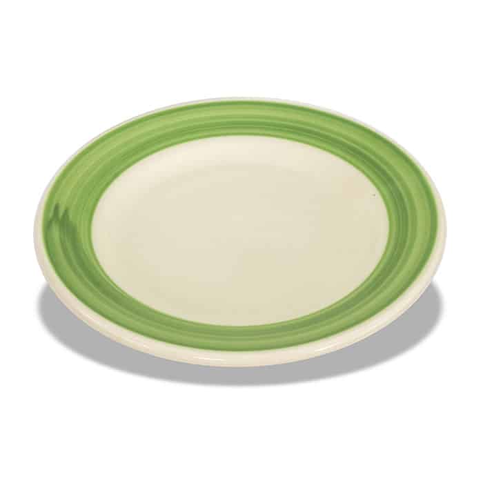 Great for restaurants, catering companies and other food service facilities, the Crestware PICR42G Piccolo Green Rim Plate 6-3/4″ features a charming look to complement a variety of table arrangements. Designed with a classic look enhanced by a green wide rim, this plate is perfect for showcasing entrees, hors d’oeuvres and other specialty dishes.