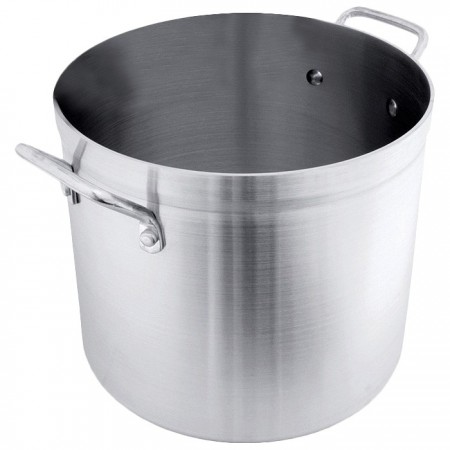 Thanks to its pressed 3003 aluminum construction, this professional grade pot delivers optimum heat conduction while being strong enough to withstand heavy duty use. Built with anti-slip handles, this stock pot is easy to transport from the counter top to the stovetop even when wearing oven mitts.