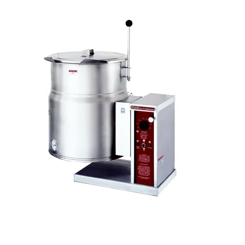 Using steam to heat its contents, the Crown Steam EC-12TW tilting kettle is excellent for preparing and holding stews, soups, and other liquid food products. This kettle has a 12-gallon capacity to hold products at any temperature from 165 to 285 degrees Fahrenheit. Stainless steel construction in both the kettle and its liner provides rust protection and resists the scratching of serving spoons. A low-water cut-off monitors the steam water level, halting operations if conditions grow too unfavorable.