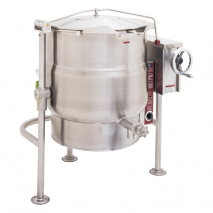Perfectly simmer your soups and stews more efficiently with Crown Steam’s Electric Floor Model Tilting Kettles. These kettles have a 2/3 steam jacketed body sheathed in stainless steel and are air gap insulated.This model has a 40 gallon (151 liters) capacity and a simple, self-locking tilt mechanism.