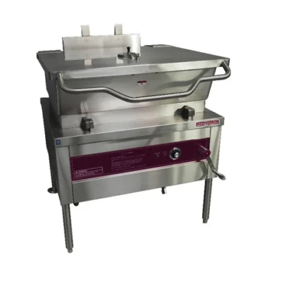 - Manual tilt mechanism for dumping cooked product into storage vessels