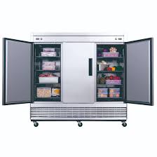 The Dukers D83RF reach-in commercial refrigerator & freezer is designed to suit the needs of any business who needs optimal performance without sacrificing design. Its’ three doors are accented with high-quality brushed Stainless Steel for both the interior and exterior to fit a variety of decors. Recessed door handles allow for clean styling and better ergonomics. The heavy-duty 1/2+1/4 HP compressor is bottom mounted for excellent efficiency and better cooling. Digital controls fine-tune the desired interior temperature. Self-closing doors free up your hands for added convenience and ease of use. Auto-defrosting provides lower energy costs and colder temperatures. The included 12 shelves can be adjusted or removed for flexibility and maintenance. Easily move and position with four swivel casters.