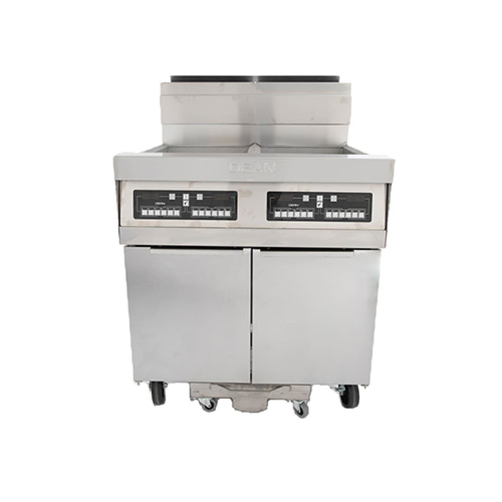 The Dean 4FPRG50T gas fryer’s four frypots each have a 50-pound capacity. To withstand back-to-back applications, these frypots heat up and recover quickly. They’re heated with a thermo-tube system that transfers heat throughout a larger surface area, so the oil doesn’t overload or break down. Throughout operation, users can manage oil temperatures with the durable temperature probe and adjust temperatures with the millivolt controller as needed. This fryer’s frypots, doors, and sides are made of durable, corrosion-resistant stainless steel, and the unit measures 83 inches wide by 42 inches deep by 55 inches high overall.