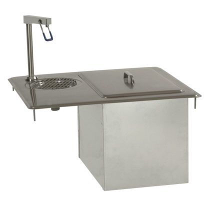 Ice & Water Unit, Drop-In, single service, glass filler, insulated ice chest, 45 pound ice storage capacity, chrome plated wire strainer, lift-off cover with handle, stainless steel top, galvanized steel exterior tank, (21″ x 17-3/4″ cutout required), NSF