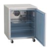 - Evaporator coil and temperature control are mounted on the interior rear wall