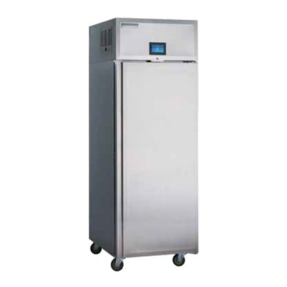 Specification Line Freezer, Pass-Thru, one-section, 23.0 cubic feet capacity, top-mounted self-contained refrigeration system, (2) full-height hinged solid doors (locking), (3) adjustable chrome wire shelves, 4.3″ easyTouch screen temperature display/control with remote monitoring, LED interior lighting, pilaster with shelf clips, stainless steel exterior front, sides & interior, (4) 5″ locking casters, GreenGenius R290 Hydrocarbon refrigerant, 0.55 HP, 115v/60/1-ph, 7.2 amps, NEMA 5-15P, NSF, cULus, ENERGY STAR