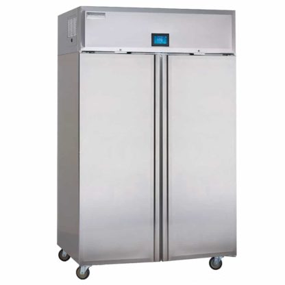 This Delfield GAH2-SH heated cabinet generates temperatures between 120 and 200 degrees Fahrenheit to accommodate various warming applications. For best airflow and energy efficiency, its heating elements are built behind and span the length of the vertical ducts. Operators can control temperature remotely via the easyTouch control system, which provides a digital exterior temperature display and high- and low-temperature alarms. To ensure precooked foods remain warm for serving, the cabinet is insulated with high-density, foamed-in-place polyurethane.