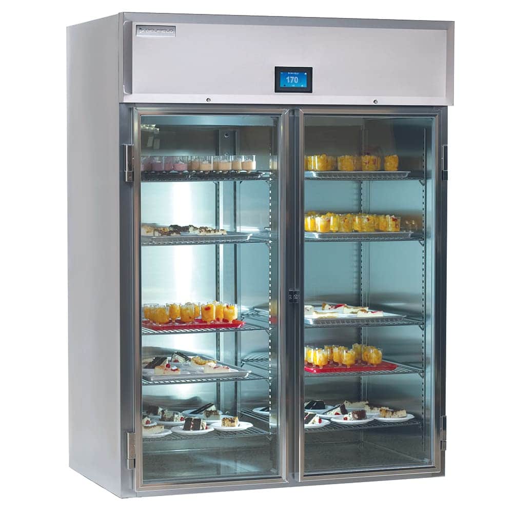 Specification Line Heated Cabinet, Roll-In, one-section, 37.0 cubic feet capacity, (1) full-height hinged glass door (locking), 4.3″ easyTouch screen temperature display/control with remote monitoring, incandescent interior lighting, 1″ tall stainless steel ramp, stainless steel exterior front, sides & interior, 208-240v/60/1-ph, 6.0 amps, NEMA 6-20P, NSF, cULus, ENERGY STAR