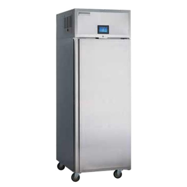 Specification Line Refrigerator, Pass-Thru, one-section, 23.0 cubic feet capacity, top-mounted self-contained refrigeration system, (2) full-height hinged solid doors (locking), (3) adjustable chrome wire shelves, 4.3″ easyTouch screen temperature display/control with remote monitoring, LED interior lighting, stainless steel exterior front, sides & interior, (4) 5″ locking casters, GreenGenius R290 Hydrocarbon refrigerant, 0.22 HP, 115v/60/1-ph, 4.2 amps, NEMA 5-15P, NSF, cULus, ENERGY STAR