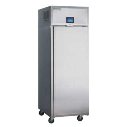 Specification Line Refrigerator, Pass-Thru, two-section, 50.0 cubic feet capacity, top-mounted self-contained refrigeration system, (4) full-height hinged solid doors (locking), (6) adjustable chrome wire shelves, 4.3″ easyTouch screen temperature display/control with remote monitoring, LED interior lighting, stainless steel exterior front, sides & interior, (4) 5″ locking casters, GreenGenius R290 Hydrocarbon refrigerant, 0.38 HP, 115v/60/1-ph, 6.5 amps, NEMA 5-15P, NSF, cULus, ENERGY STAR