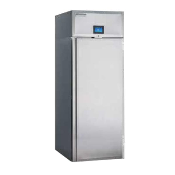 Specification Line Refrigerator, Roll-Thru, one-section, 39.0 cubic feet capacity, top-mounted self-contained refrigeration system, (2) full-height hinged solid door (locking), 4.3″ easyTouch screen temperature display/control with remote monitoring, LED interior lighting, 1″ tall stainless steel ramp, stainless steel exterior front, sides & interior, GreenGenius R290 Hydrocarbon refrigerant, 0.35 HP, 115v/60/1-ph, 6.0 amps, NEMA 5-15P, NSF, cULus, ENERGY STAR
