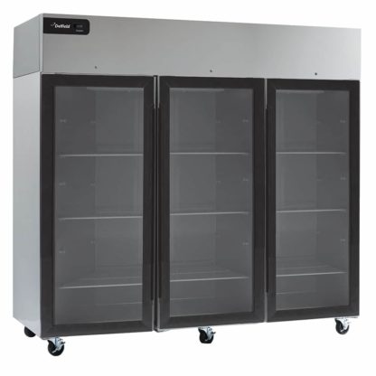 Durable to support heavy use, the sides, front, and interior floor of the Delfield GBR3P-G Coolscapes reach-in refrigerator are made of heavy-duty stainless steel. This metal defends against rusting, denting, and corroding and simplifies cleaning. Adding corrosion resistance, the remainder of the interior as well as the back are constructed of aluminum, and the unit offers 71 cubic feet of interior space divided into three sections. It’s equipped with nine epoxy-coated wire shelves to facilitate product organization, and the cabinet is fitted with LED lighting to increase visibility.