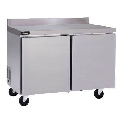 Ideal for high-volume environments where it’ll experience heavy use, the Delfield GUF32BP-S Coolscapes worktop freezer’s top and front are made of dent- and rust-resistant stainless steel. For additional durability, its sides are constructed of corrosion-resistant aluminum. The interior is equipped with a single gray epoxy-coated shelf, and the top is furnished with a 4-inch backsplash to keep messes off the adjacent wall. To facilitate transportation, this unit is positioned on 5-inch casters, two of which lock to secure it in place.