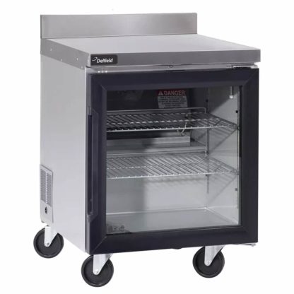 Coolscapes Worktable Refrigerator, one-section, 27″ W, 6.5 cubic feet, (1) glass door, (1) gray epoxy coated shelf, 4″ backsplash, LED interior lighting, stainless steel top and front, aluminum sides, galvanized back and bottom, gray coated aluminum interior sides & anodized aluminum bottom, 5″ casters (2 locking, 2 non-locking), rear-mounted refrigeration system, R290 Hydrocarbon refrigerant, 115v/60/1, 3.2 amps, 8′ cord, NEMA 5-15P, 1/5 HP, UL, cUL, NSF