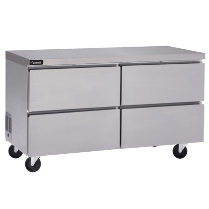 Coolscapes Undercounter/Worktable Refrigerator, two-section, 60″ W, 11.7 cubic feet, (4) drawers, holds (24) 1/6 size pans 6″ deep, stainless steel top and front, aluminum sides, galvanized back and bottom, gray coated aluminum interior sides & anodized aluminum bottom, 5″ casters (2 locking, 2 non-locking), rear-mounted refrigeration system, R290 Hydrocarbon refrigerant, 115v/60/1, 3.2 amps, 8′ cord, NEMA 5-15P, 1/5 HP, UL, cUL, NSF