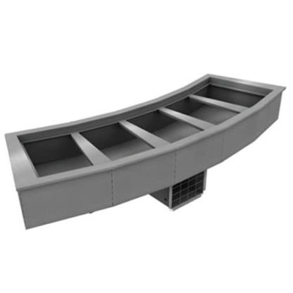 Drop-In Curved Mechanically Cooled Cold Pan, 3-pan size, thermostat for temperature control, stainless steel holding clip & louver, push in perimeter gasket, 1″ drain, R404A refrigerant, 1/4 HP, cUL, UL, NSF