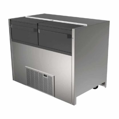 Milk Case Cooler, single access, 40″W, 12.6 cu. ft. capacity, (8) 13″ x 13″ case capacity, (2) black ABS hinged lids with locks, 20 gauge stainless steel interior, 18 gauge stainless steel exterior, 5″ casters, self-contained, (2) evaporator coils, R290 Hydrocarbon refrigerant, 0.35 HP, 115v/60/1-ph, 5.0 amps, NEMA 5-15P, UL, cUL, NSF