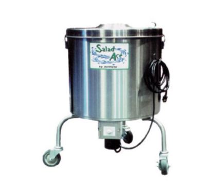 Shelleymatic Salad Dryer, capacity (20) gallons, stainless steel exterior & lid, polyurethane interior, unit completely enclosed, watertight motor, 1-1/2″ drain, adjustable on/off timer with cycles up to 5 minutes, cord & plug included, 4″ locking stem casters, 1/6 HP, 115v/60/1-ph, 2.7 amp, NEMA 5-15P, cUL, UL, NSF