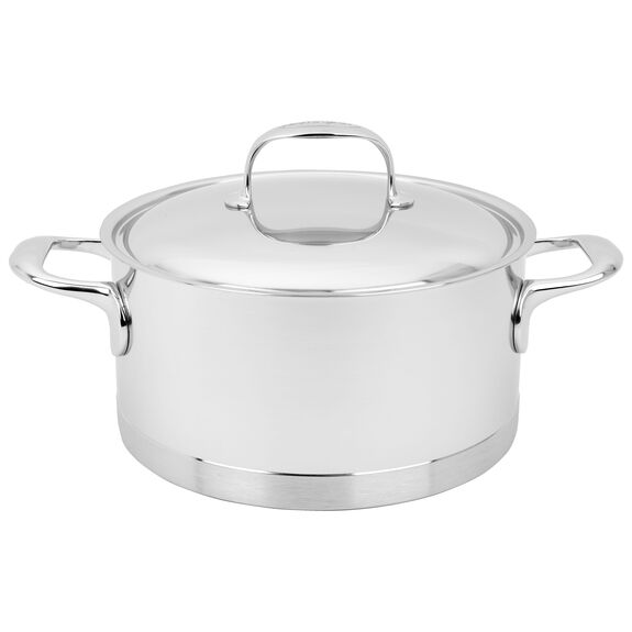 The straight sided pans boast a 7-layer base, InductoSeal, whose copper disk ensures impressive heat conduction. Proprietary technology ensures the base stays flat even when heated. The patented Silvinox surface treatment maintains the beautiful silvery white matte appearance. Enjoy easy maneuverability with the stay-cool, welded handles while the rolled rims encourage dripless pouring.