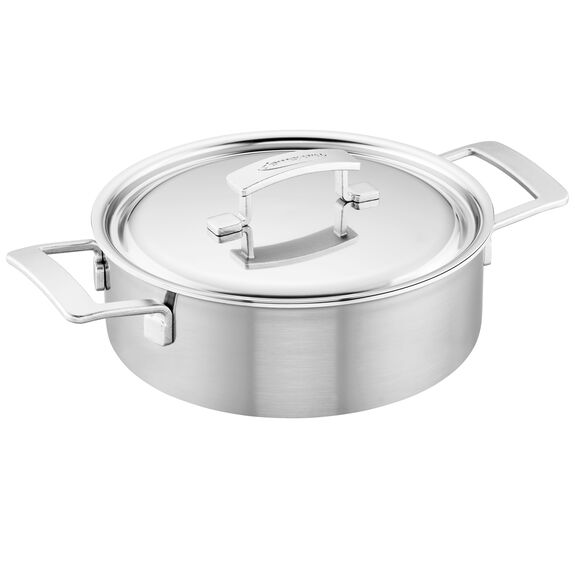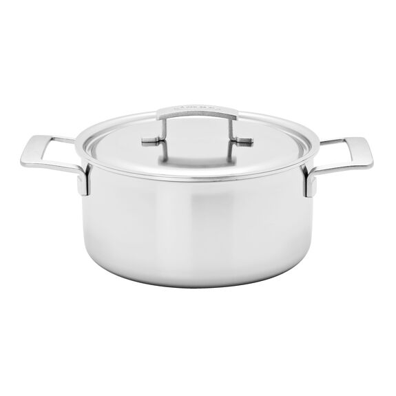 This stew pot with lid from the Industry series is the perfect combination of frying pan and stock pot. Fans of solid industrial design will love this pot. The look for this new series has been created by Belgian designer Stefan Schöning. It is inspired by American cookware. Thanks to the easy-care Silvinox® surface, the pot keeps its silvery shine for years. The stew pot with lid is entirely made of multi-layered stainless steel, enabling excellent heat conductivity and making it easy to clean. The 5-ply material conducts heat across the entire base up to the rim ensuring a consistent cooking result. Even at a low heat the stew pot offers excellent heat conductivity. It can be used on all types of cookers, including induction hobs. Soups, casseroles or stews – the pot holds up to 5.2 litres. Measuring 24 cm and a height of 12 cm, the pot is ideal for larger portions. Thanks to its two shot-blasted stainless steel handles, the stew pot is easy to handle. During the cooking process they only heat up slightly. Discover the design, functionality and ease of use of the Demeyere stew pot for yourself.