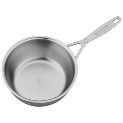 Designed to meet the demands of busy restaurant kitchens, the Industry 2-qt Stainless Steel Saucier cooks up savory sauces, tender oatmeal and fluffy risotto. The flared walls eliminate the issue of grains getting lodged in corners while the wide mouth makes frequent stirring a breeze. Thanks to its chef-friendly features – like a dripless pouring rim and an ergonomic stay-cool handle – this premium pan is a pleasure to cook with.