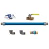- Includes (2) 90-degree elbows, gas ball valve, and restraining cable