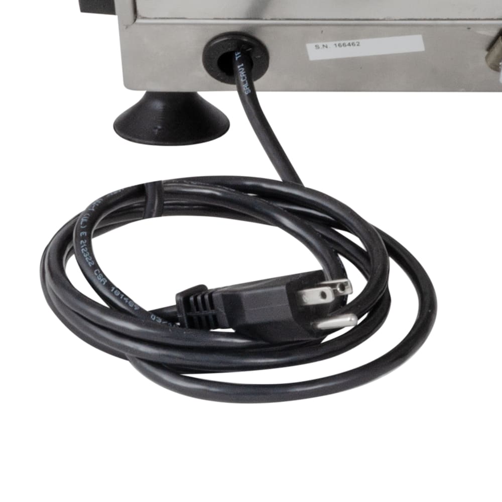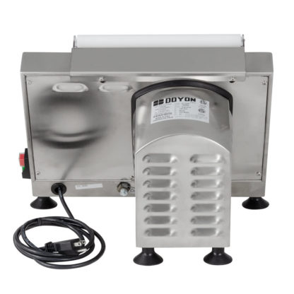 Dough Sheeter, countertop, one (1) set of rollers, sheets up to 12″ maximum, up to 250 pieces per hour, fully adjustable, stainless steel construction, sanitary plastic rollers, 120v/60/1, 370 watts, 1/2hp motor, ETL