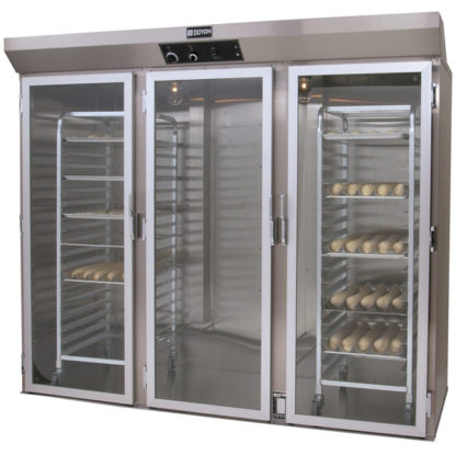 The Doyon E336R proofing cabinet is constructed of stainless steel to resist rust, stains, and scratches. The interior floor is made of aluminum to withstand heavy racks. Glass doors and bright lights provide product visibility so operators can check on the dough. The countdown timer enables the operator to keep up with proof time. Its heating system evenly distributes heat and humidity throughout the cabinet and both heat and humidity are electronically controlled. This proofer doesn’t need a drain to be used.
