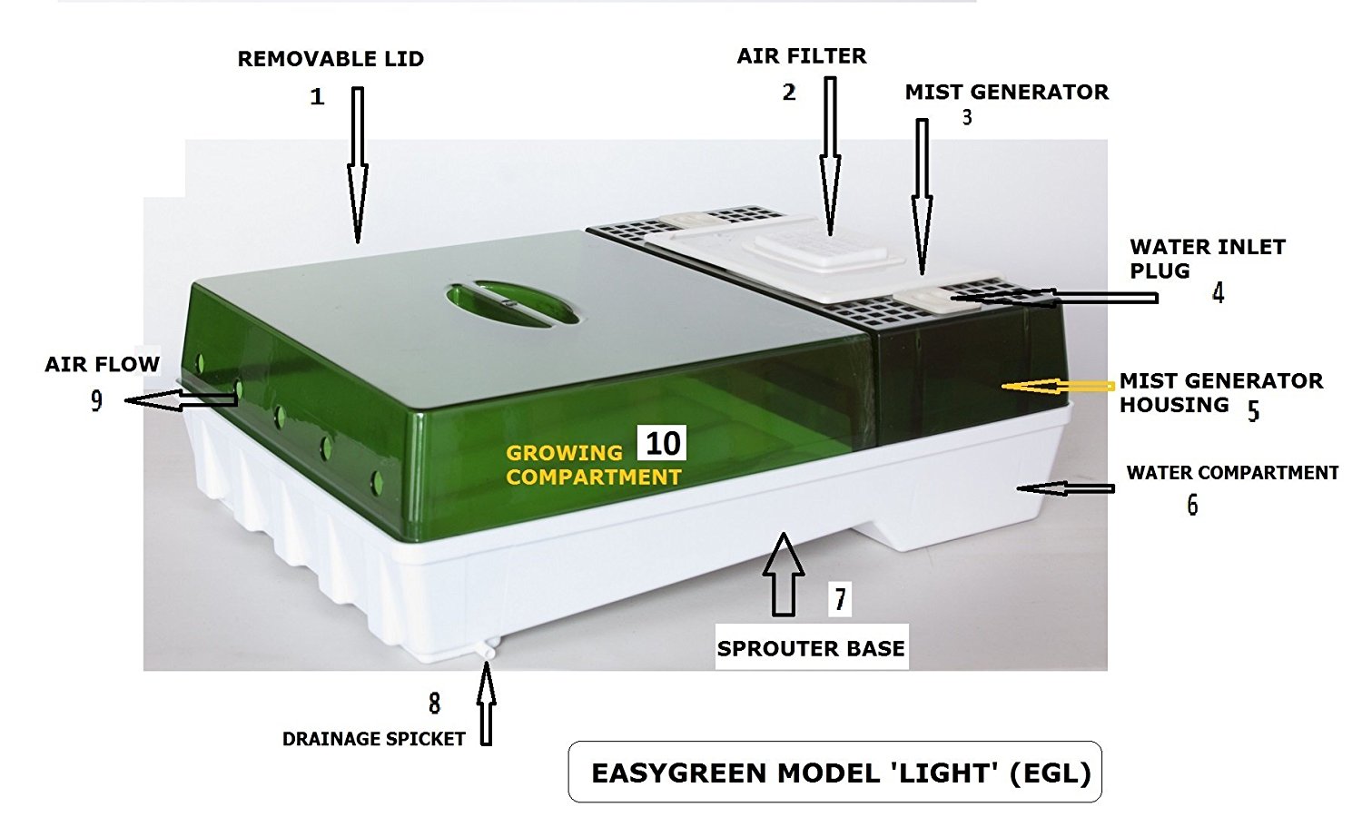 - Patented Mist Generator technology simultaneously distributes mist and oxygen to seeds and sprouts.