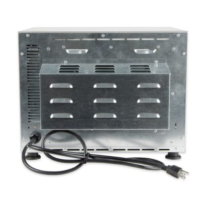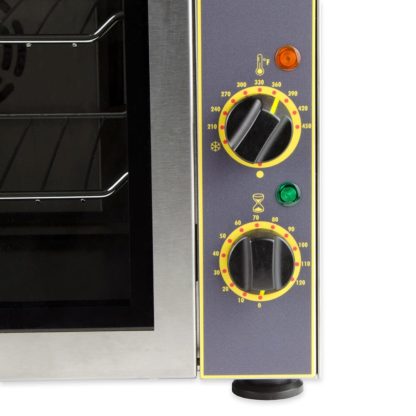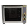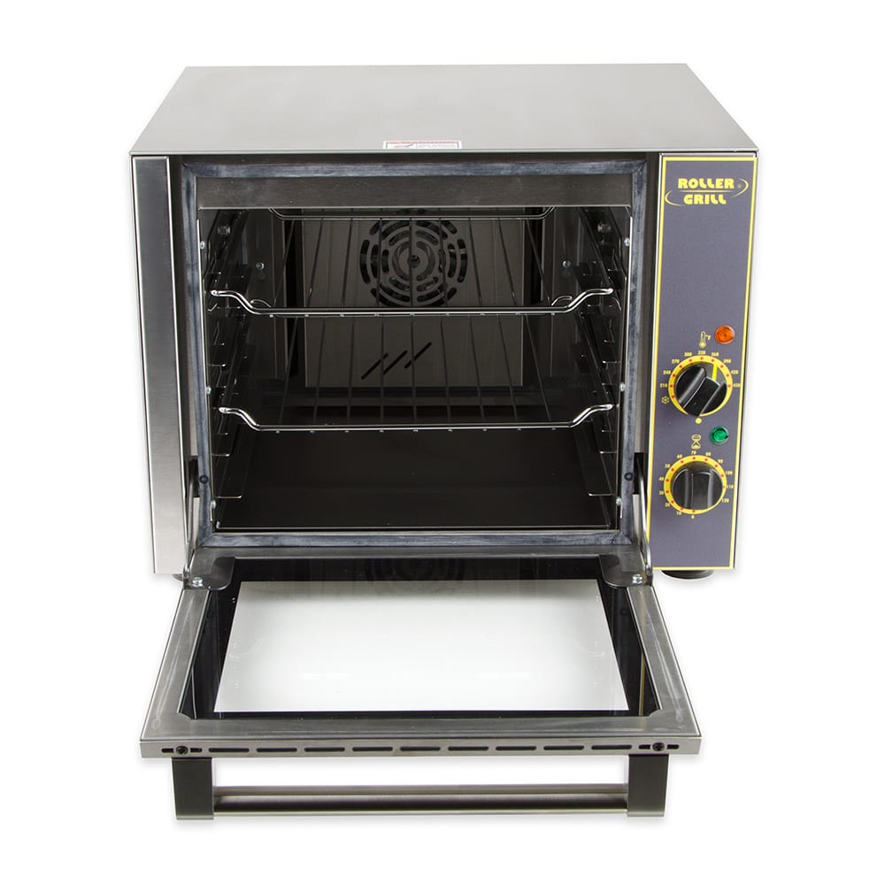 Equipped with a handle for safe opening and closing, the Equipex FC-280/1 quarter-size countertop oven’s door is made of glass to provide users with a clear view of food as it bakes. This unit’s compact countertop design enables it to be installed in areas where a full-size oven can’t fit. It includes a 120-minute timer to help users track cooking times, and it can be set to temperatures as high as 450 degrees Fahrenheit.