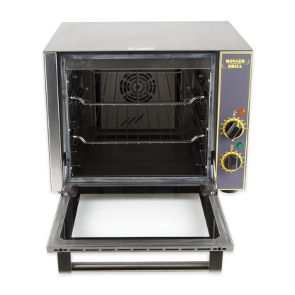 The Equipex FC-280 quarter-size countertop convection oven’s interior and exterior are made of durable stainless steel to withstand heavy use without rusting, denting, or warping. This unit can hold as many as three quarter-size sheet pans and comes with an aluminum bake tray and two wire racks to support product as it cooks. The door is made of safety glass for enhanced visibility and has a handle for comfortable opening and closing.