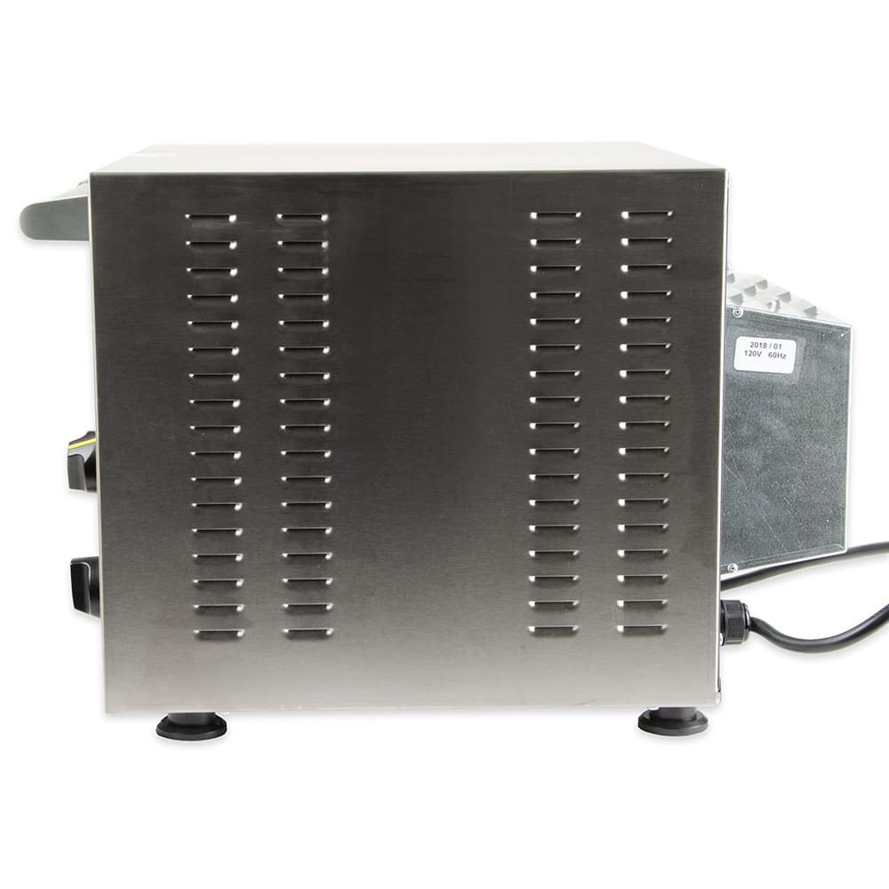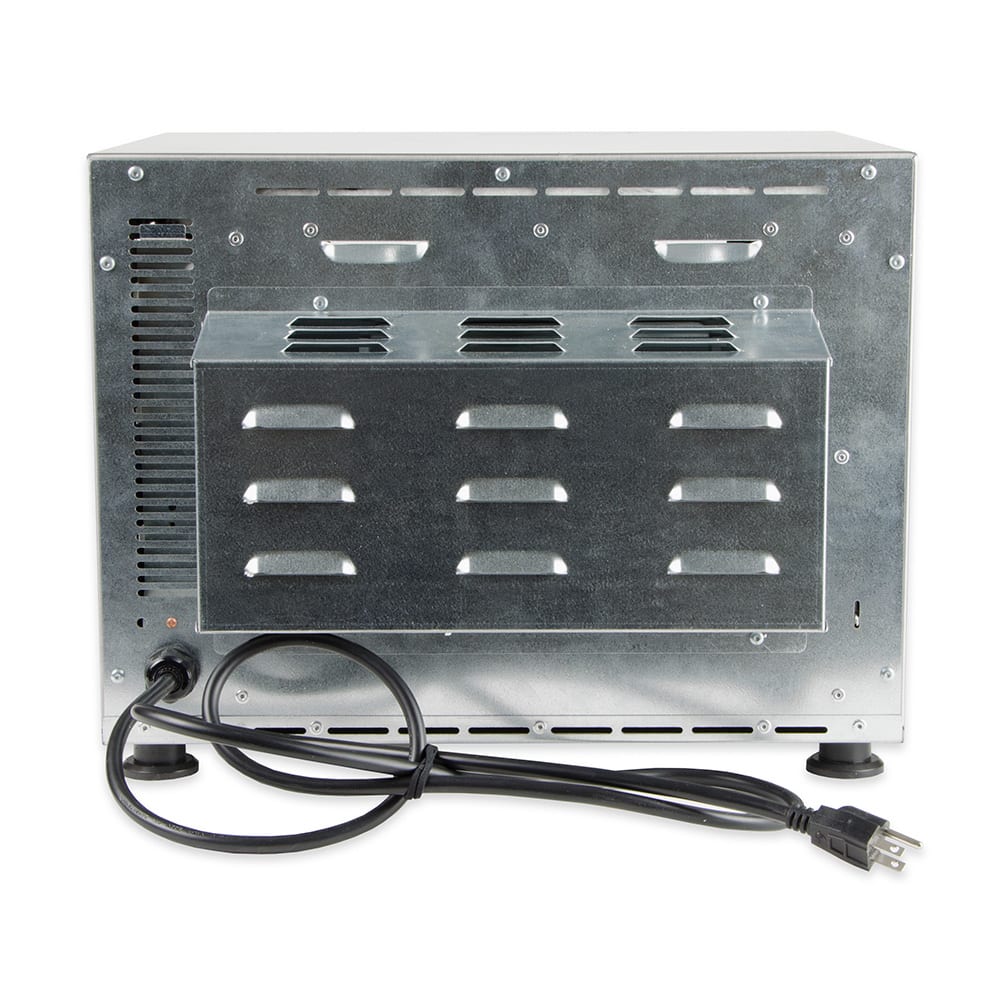 The Equipex FC-280 quarter-size countertop convection oven is designed with a rear-mounted fan and heater to evenly circulate air and ensure fast, uniform cooking. It’s compact and fits on countertops or equipment stands, making it a good choice for smaller locations without much space available. With its built-in timer, this oven can track cooking for as long as 120 minutes, and its manual controls operate thermostatically for reduced temperature fluctuations.