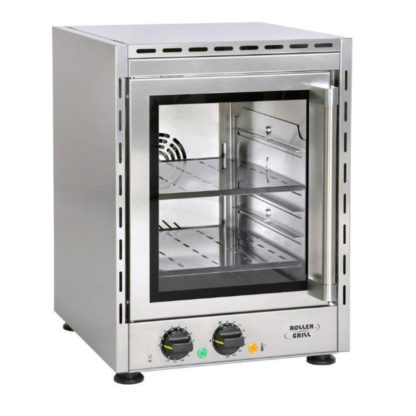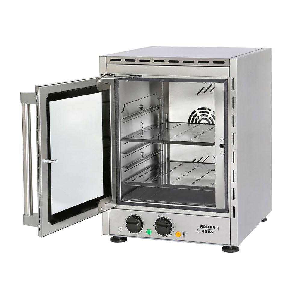 For resistance to rust and ease of cleaning, the Equipex FC-280V quarter-size countertop convection oven is made of durable stainless steel inside and out. It comes with 3 slotted stainless steel shelves and 1 drip pan to facilitate operation. Able to reach cooking temperatures as high as 450 degrees Fahrenheit, this oven is suitable for preparing a variety of products. It features manual controls and has a timer that can be set as long as 120 minutes.