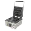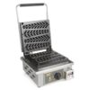 The Equipex GES23/1 waffle maker creates waffles on a stick with a unique Cypress pattern, and while notches in the plates leave room to insert sticks, a rim around the pattern helps make defined edges. Constructed of cast iron, the plates heat up evenly and, when seasoned, release waffles with ease. Providing enough room for the batter to cook and expand, the top plate is hinged. In case too much batter was poured in, a drip tray wraps around the unit, catching runaway batter from the plates.