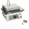 This Equipex GES23 waffle baker has a stainless steel base to streamline cleaning. A drip tray catches most of the batter before it falls to the base, though if it does, the food can simply be wiped off. To ease operation, this unit has separate power and temperature controls, and with this setup, the temperature needs to be set only once instead of every time the unit is turned on. Helping to prevent burns, a pilot indicator light shows when the unit is on, while the heat-up light shows when it is warming up, helping eliminate guesswork.