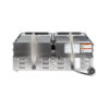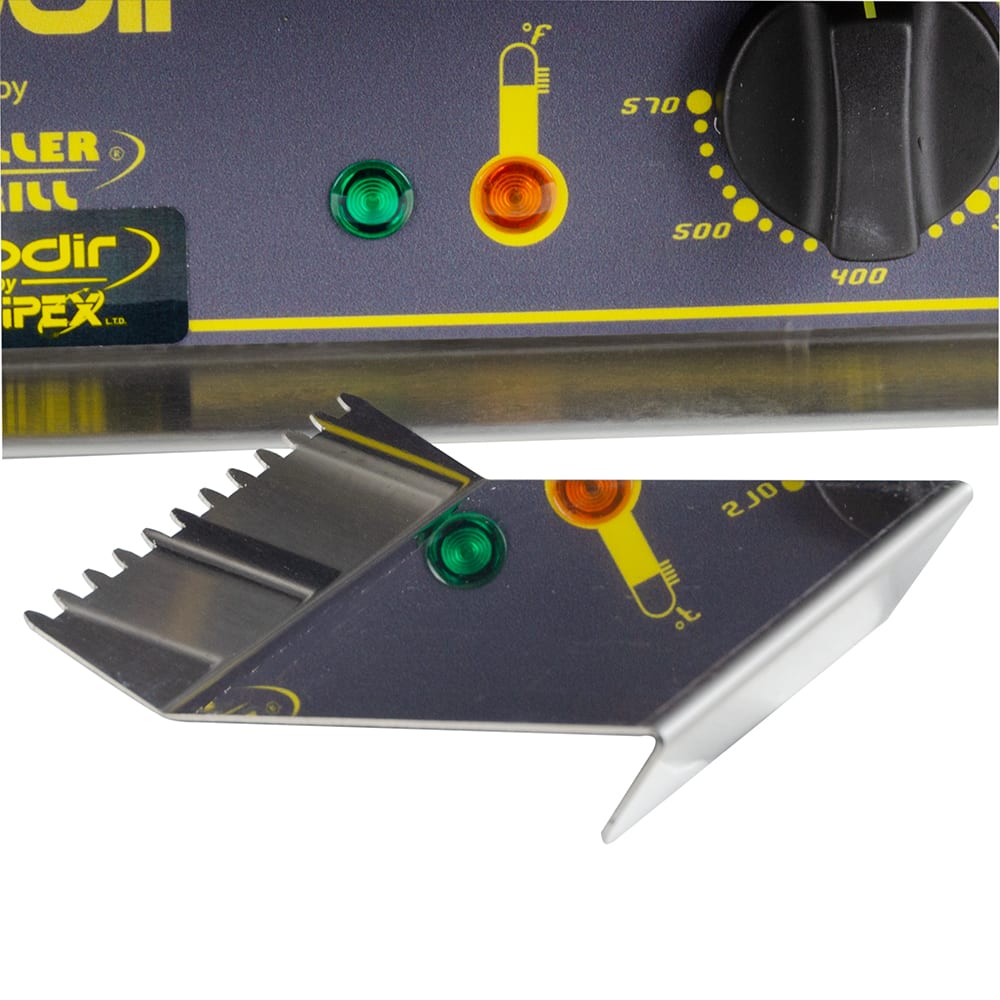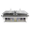 The Equipex MAJESTIC Sodir double panini press has grooved cast iron plates that leave sear marks on food and ensure liquid drains off product. Since cast iron has a high density, the plates retain heat for long periods of time and evenly distribute heat. Made of stainless steel, the base is durable and corrosion resistant. To simplify cleaning, the front drip tray is removable, and scraper blades help clean the plates. This Equipex MAJESTIC double panini press operates at temperatures as high as 570 degrees Fahrenheit.