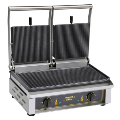 Sodir-Roller Grill Panini Grill, cast iron grooved & smooth griddle plates, 21″W x 9-1/2″D grill area, (2) independent adjustable spring counterbalanced tops, front drip tray & scraper, grills with stainless steel construction, 570°F thermostatic controls, 208/240v/60/1-ph, 16.0/18.0 amps, 4.0kW, NEMA L6-30P, cULus, cULus Classified