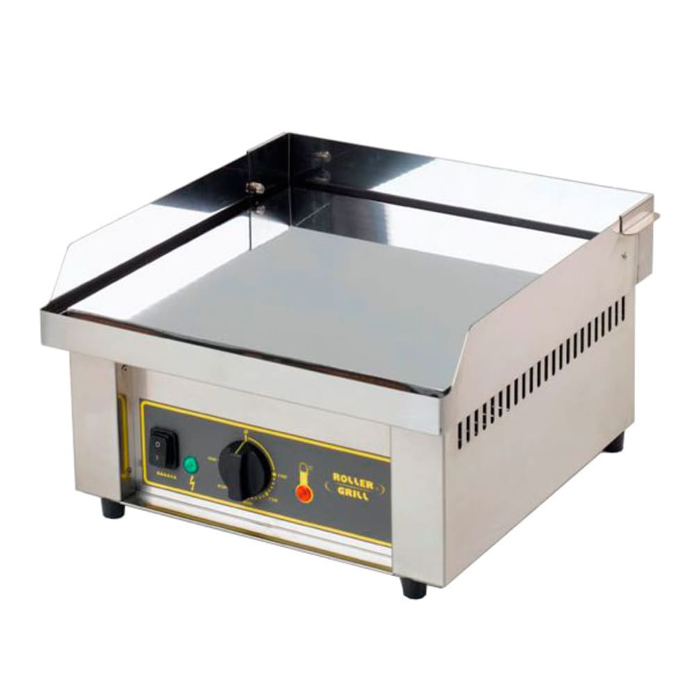 - Chrome-coated steel griddle plate is polished to a satin finish