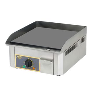 Featuring a single cooking zone, the Equipex PCC-400/1 Sodir-Roller griddle has a maximum temperature of 570 degrees Fahrenheit. To prevent inadvertent adjustments, its control panel is recessed, and temperature indicator lights alert operators when the unit is heated. An on/off switch enables users to quickly power the unit off when not it’s in use. Measuring 16 inches wide by 19 inches deep by 9 inches high, it’s designed for countertop placement.