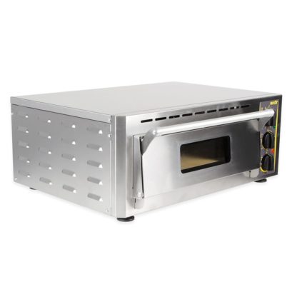 The Equipex PZ-430S countertop pizza oven preheats in just 10 to 12 minutes for quick use. Illuminated by interior lights, pizza can be monitored through a clear glass door. Providing a traditional taste, this oven is made of durable stainless steel with a fire brick stone deck for cooking. Operated with three control knobs, this unit can cook one 16-inch pizza or a few smaller pizzas.