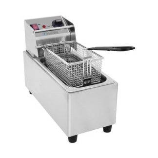 Suitable for medium-volume operations, the Equipex RF12SP electric fryer’s vat accommodates 25 pounds of oil. The components disassemble to enable operators to clean the unit thoroughly, preventing buildup and optimizing performance. This unit’s temperature is adjustable with thermostatic controls. Designed for countertop placement, it measures 131/2 inches wide by 151/2 inches deep by 11 inches high.