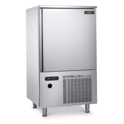 Gemm Commercial Blast Chiller/Freezer, reach-in, single section, self-contained, (10) 18″ x 26″ pan capacity, 75 lb. capacity (chilling) or 48.5 lb. capacity (freezing), 149°F to 37°F chilling, 149° to 0°F freezing, auto defrost with pause, (1) solid hinged door, includes: timer & temperature probe, stainless steel interior & exterior, stainless steel adjustable legs, R404a, 1-1/2 HP, 1950 watts, 220v/60/1-ph, 8.1 amps, cord, NEMA 6-15P, cETLus, ETL-Sanitation