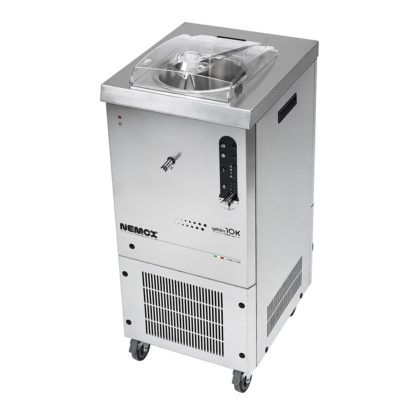 Nemox Gelato 10K Crea Machine, floor model, self-contained, 12-15 minutes production time, makes 15 qt. (14L) per hour, electronic control system, 4 preset programs, stainless steel construction, casters, 1100 watts, 120v/60/1-ph, 9.1 amps, cord, NEMA 5-15P, NSF, cETLus